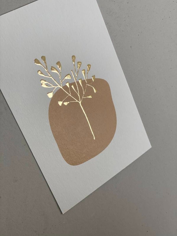 Wenskaart met goudfoliedruk. Goed beschrijfbaar kaartje van 10x15 cm. Standaard met gratis (gerecyclede) envelop!