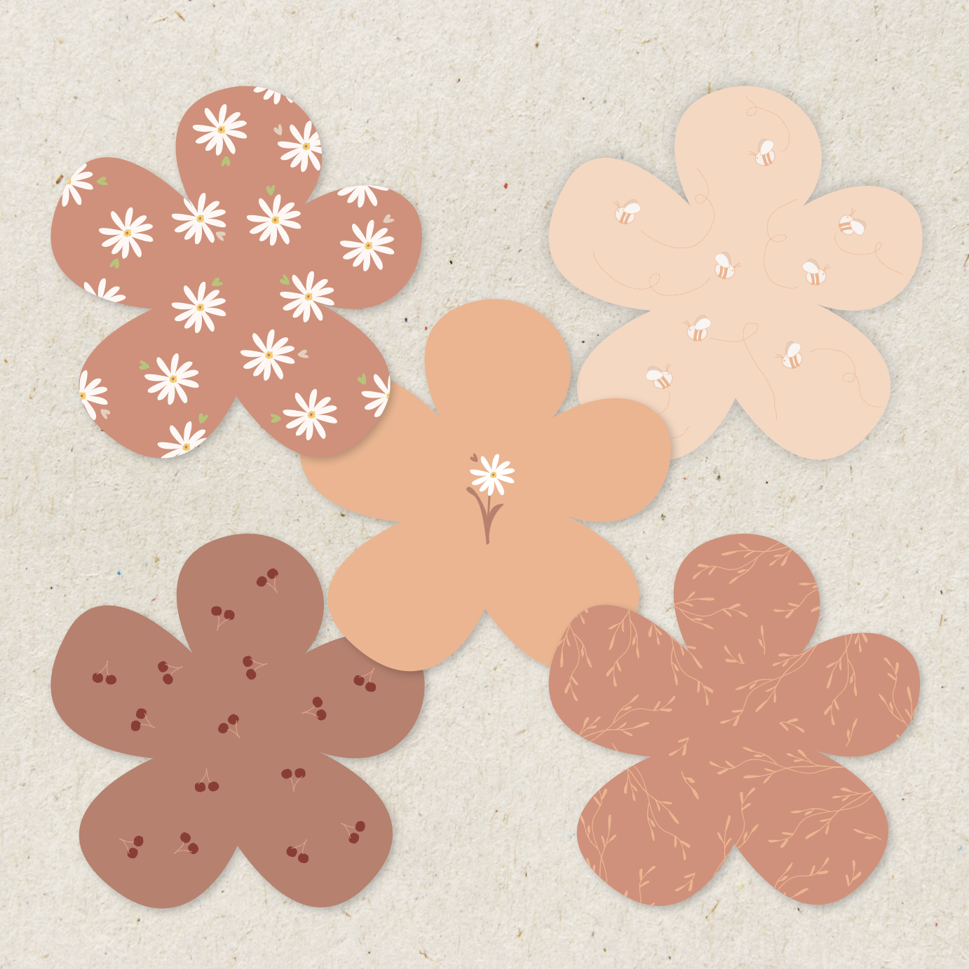 Set van 5 lieve bloemenkaarten, gestanst in unieke vorm! Elke kaart heeft een eigen afbeelding. Gestanst in unieke bloemenvorm! Gedrukt op soft touch laminaatpapier. 13x13cm. Worden geleverd inclusief envelop.